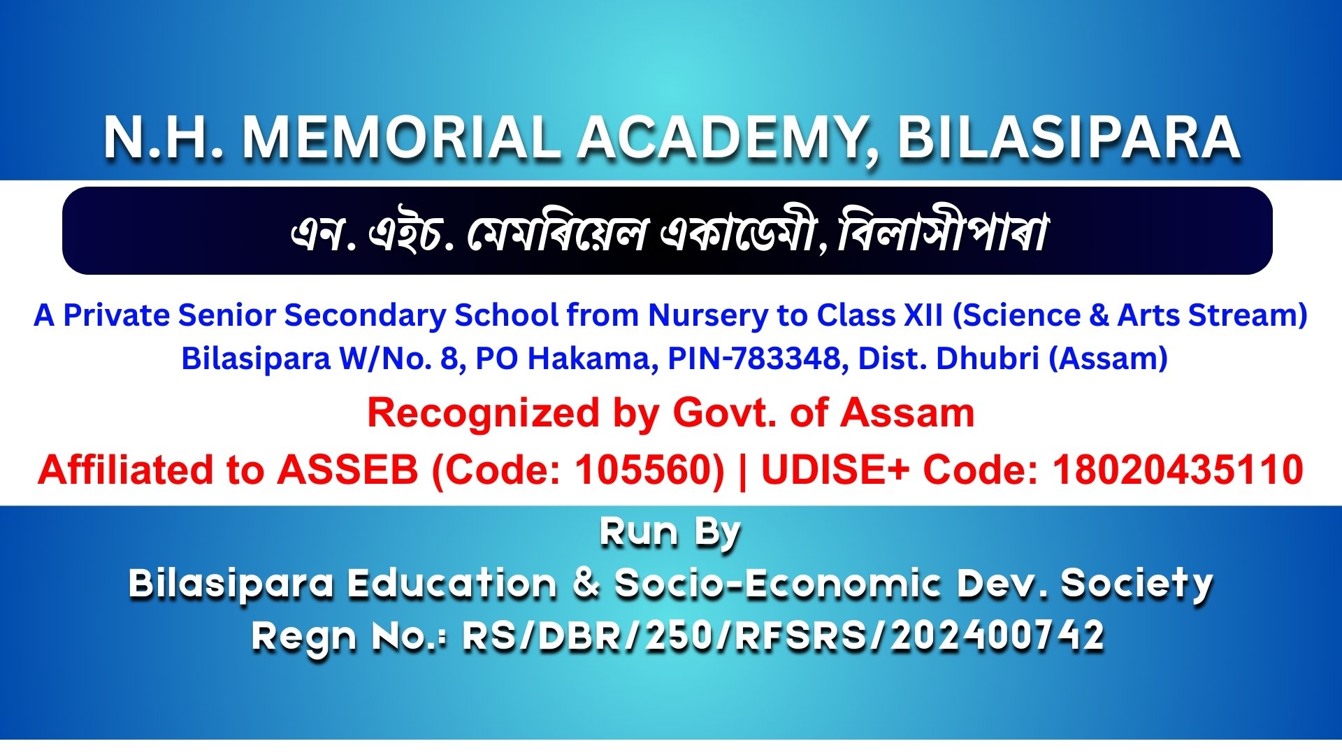 Bilasipara Education & Socio-Economic Dev. Society Regn No.: RS/DBR/250/RFSRS/202400742, we aim to educate the young generation for adoption of good citizenship norms and inculcate ideals of national unity. We help educated unemployed youths engage in different activities and assist meritorious students from poor families.